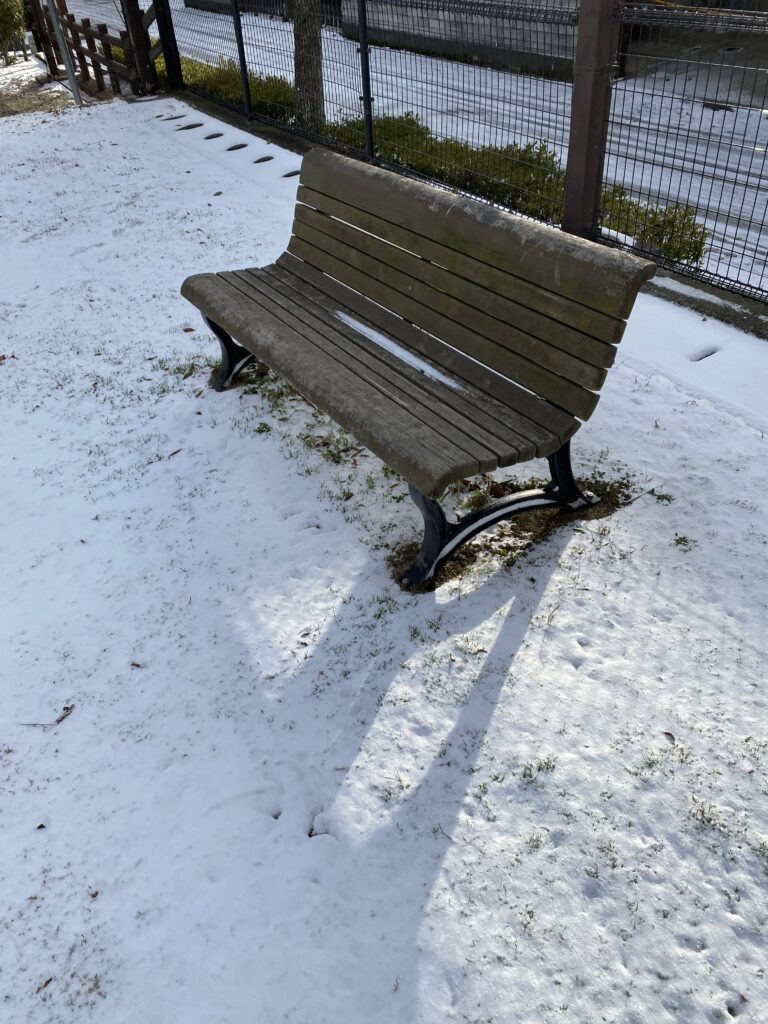 まだ誰も訪れていない公園。自分の足跡だけが残ってて、それが楽しく感じた。ほどよい積雪は、一時的に、少年の心を取り戻してくれた。